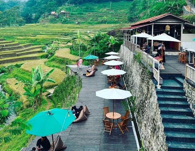 Teras Tapak Cafe menonjol karena konsepnya yang unik, dengan pemandangan alam yang mempesona dan suasana pedesaan yang tenang. Cafe ini juga menyajikan beragam menu makanan dan minuman khas Nusantara dengan harga terjangkau. Fasilitas yang nyaman seperti area outdoor yang luas, bean bag, dan payung peneduh membuat pengunjung betah berlama-lama di sini.