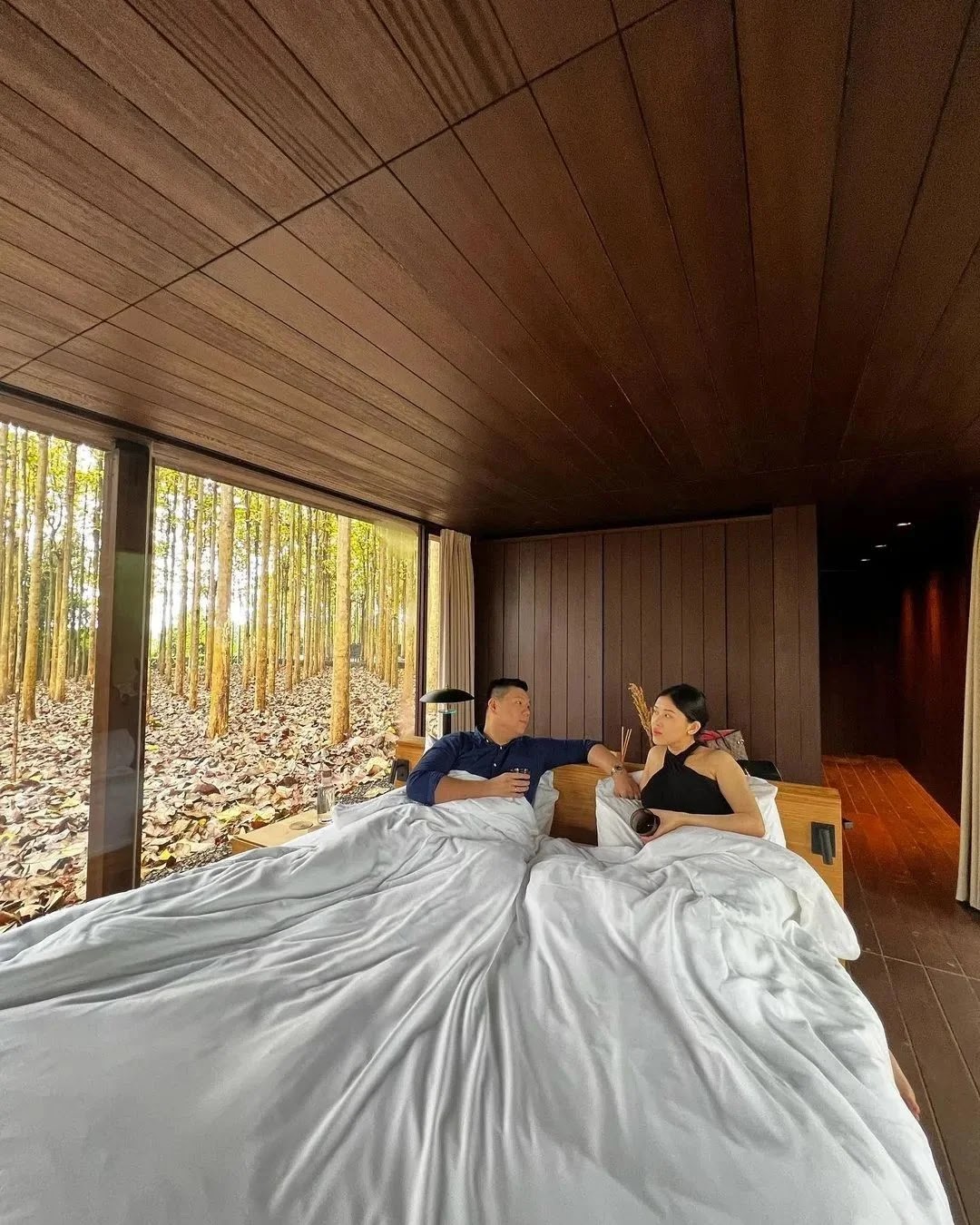 Setiap vila terbagi menjadi dua ruangan terpisah, menunjukkan hubungan erat antara manusia dan alam. Interior yang dipenuhi dengan kehadiran kayu memberikan nuansa hangat dan alami.